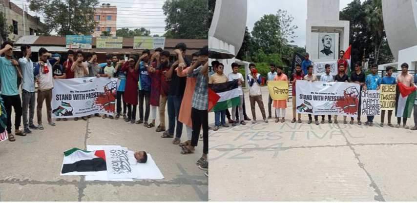 গাজায় ইসরায়েলের হামলার প্রতিবাদে কুবিতে অবস্থান কর্মসূচি